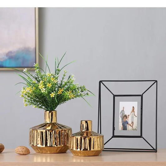 Golden Ceramic Stripe Vase – Elegant Modern Home Accessories for Stylish Décor