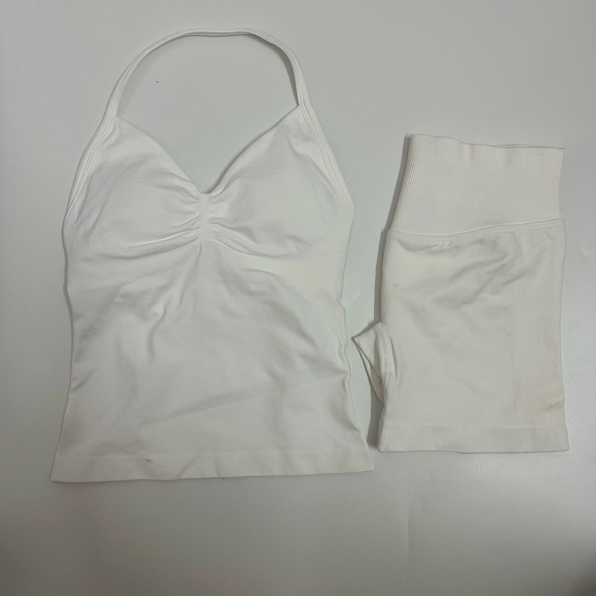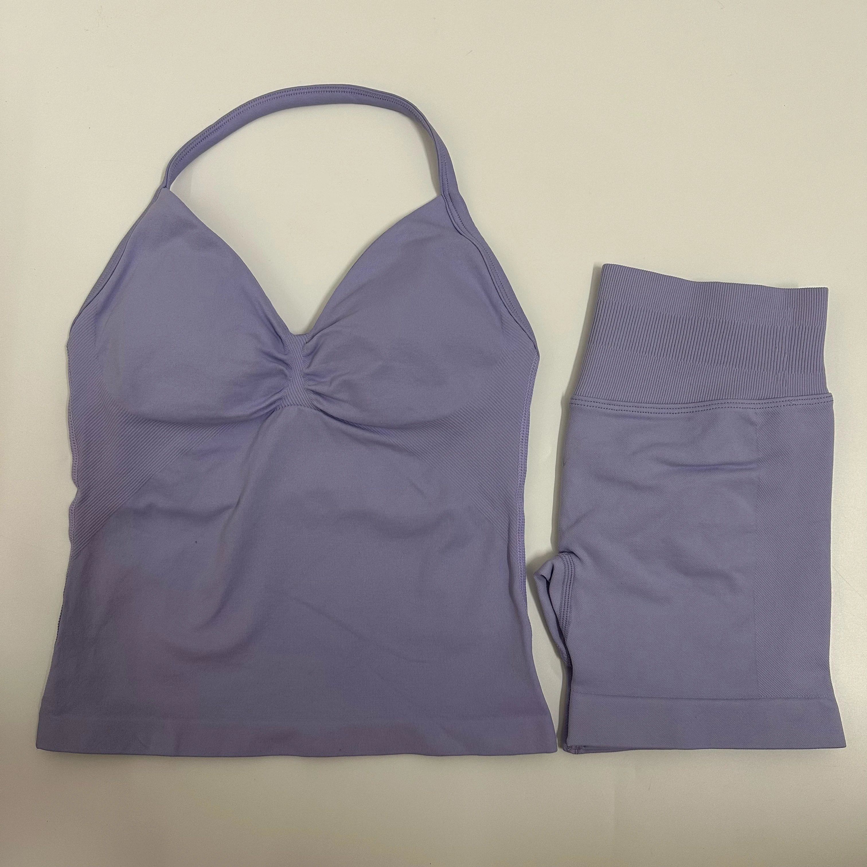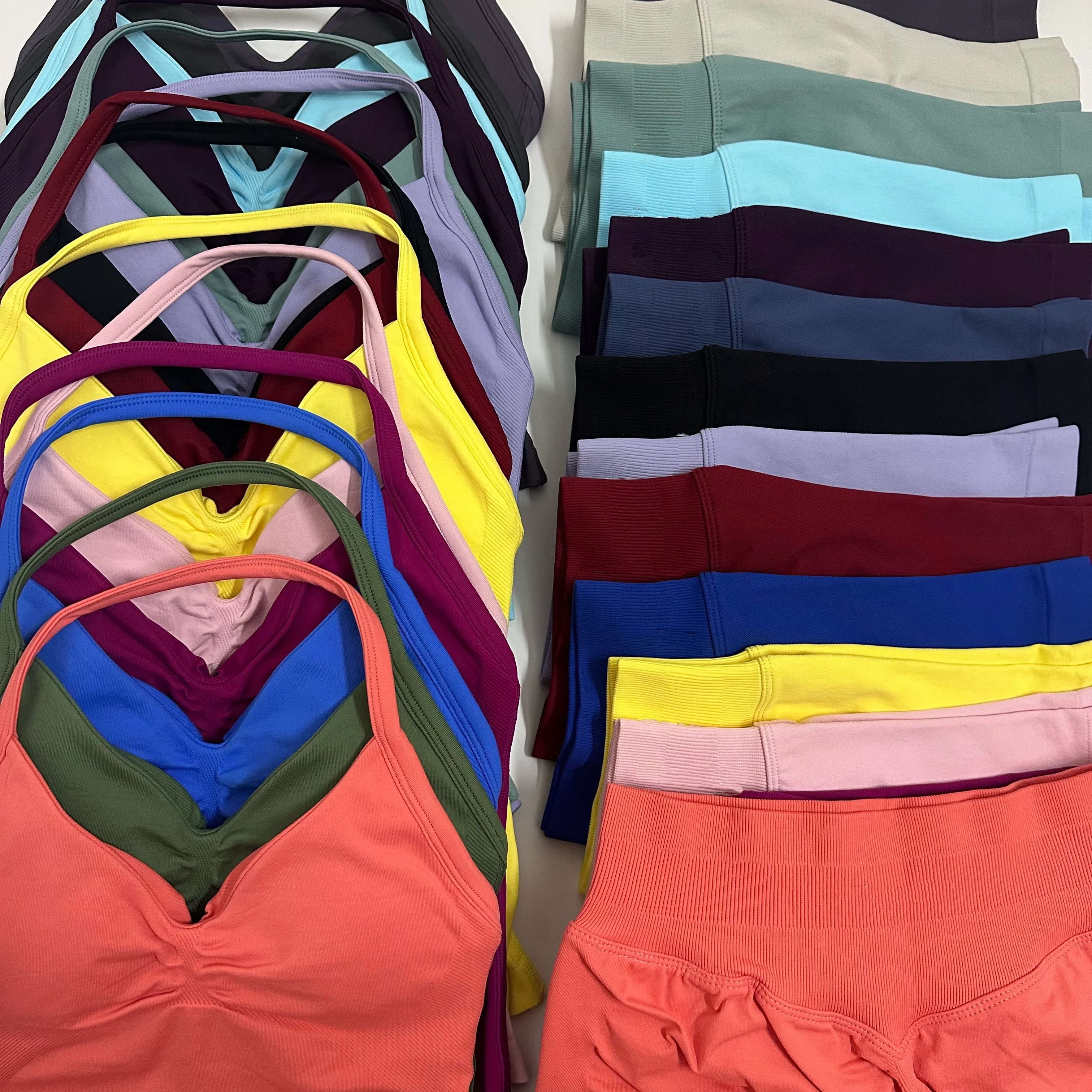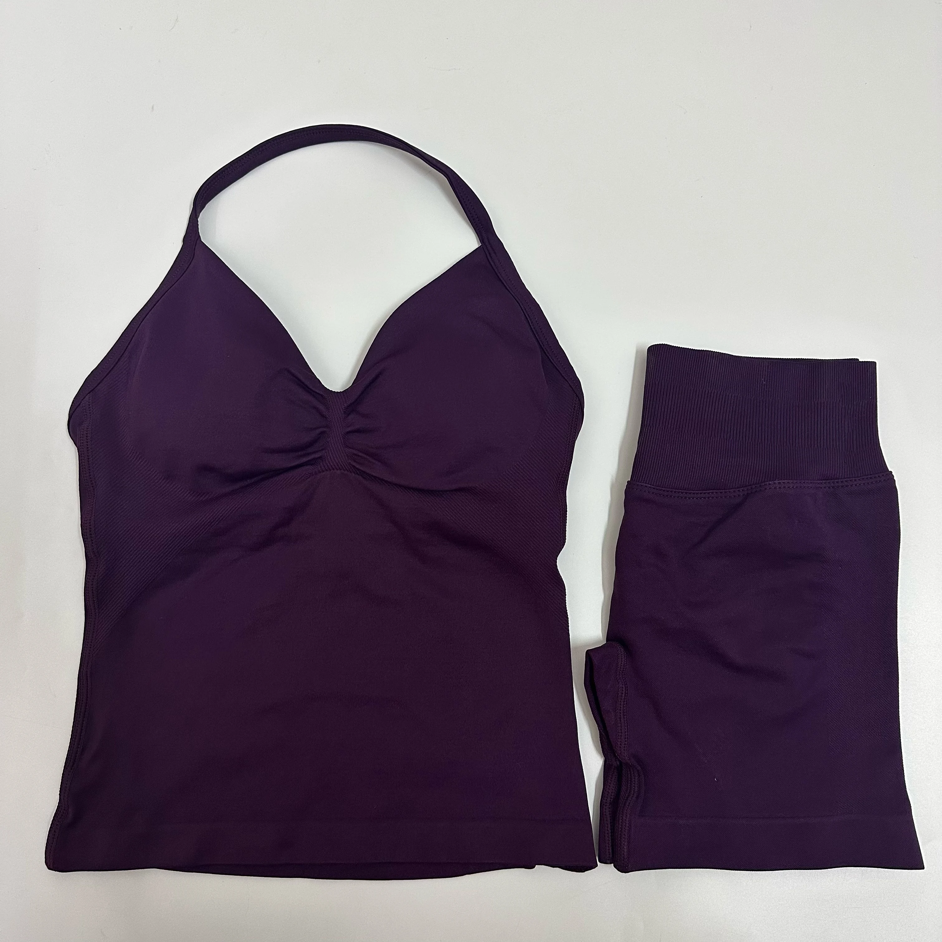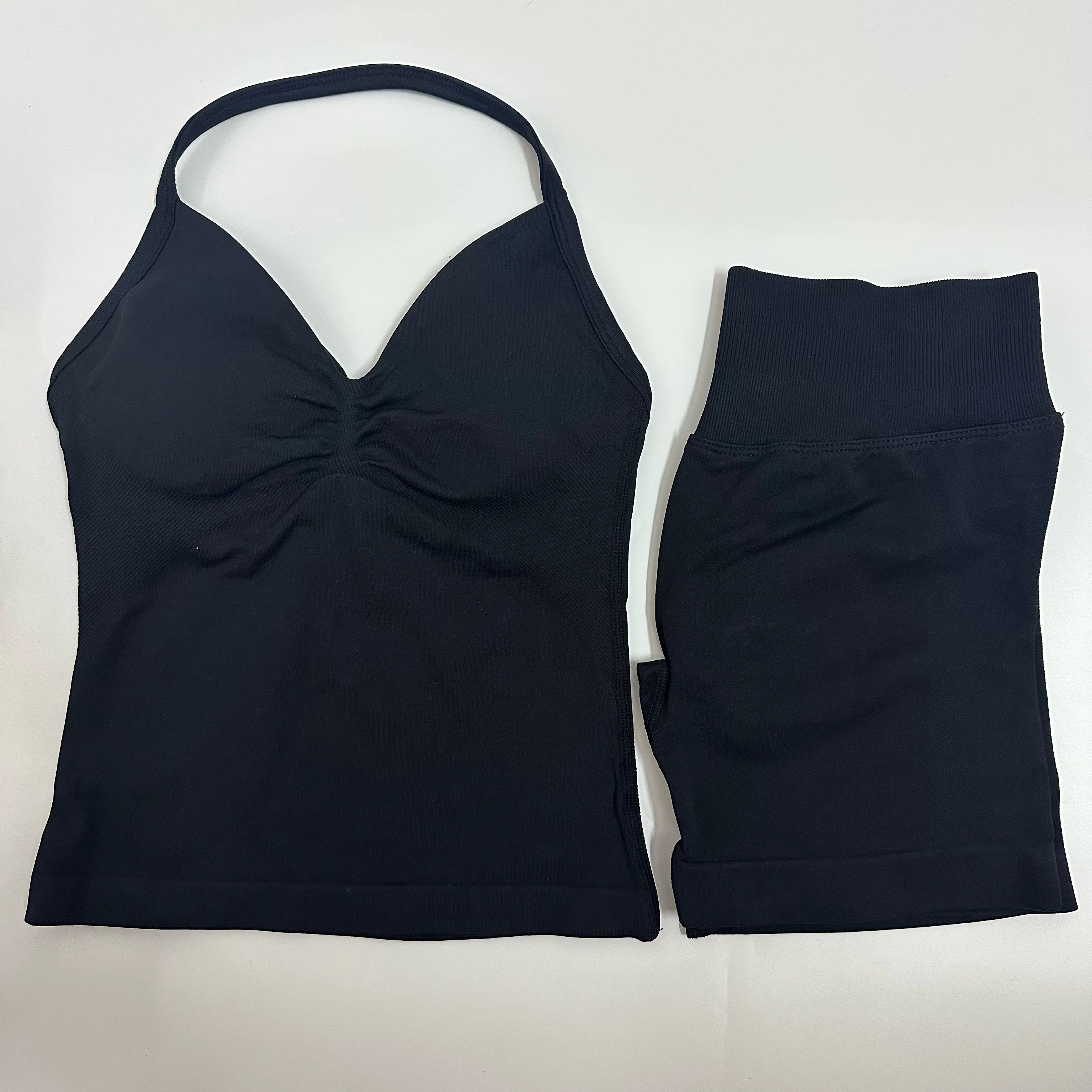2 Pieces Women Yoga Set Seamless Yoga Longline Strappy Tank Top Scrunch Sports Shorts Gym Clothes Woman Summer Workout Outfit