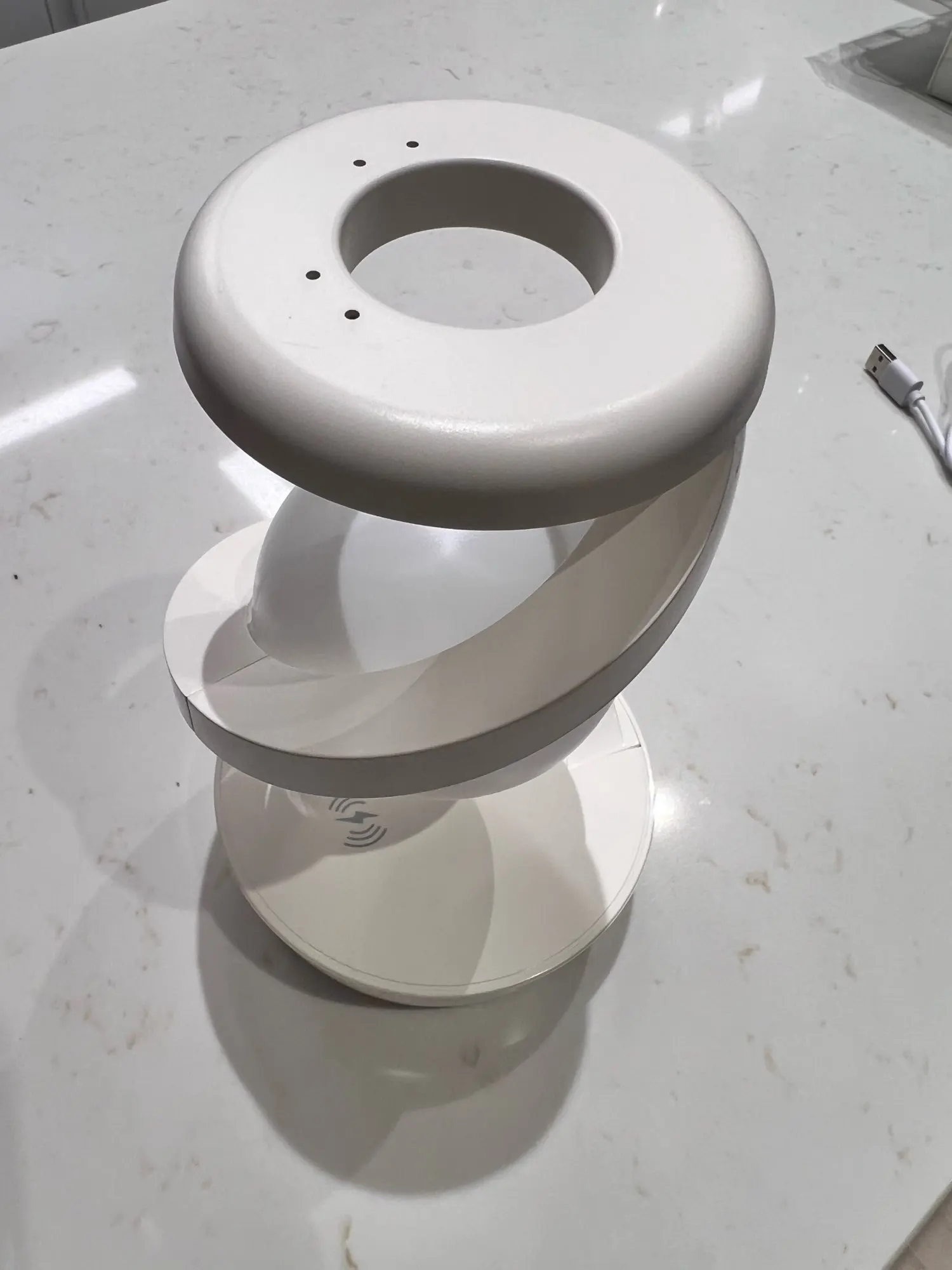 This Creative Rotating Floating Table Lamp isn’t just a lamp—it’s a statement piece that adds charm, sophistication, and smart functionality to any room. Perfect for enhancing your living room, bedroom, or office space, this lamp doubles as an RGB Night Light and a 15W Wireless Charger for your mobile devices.