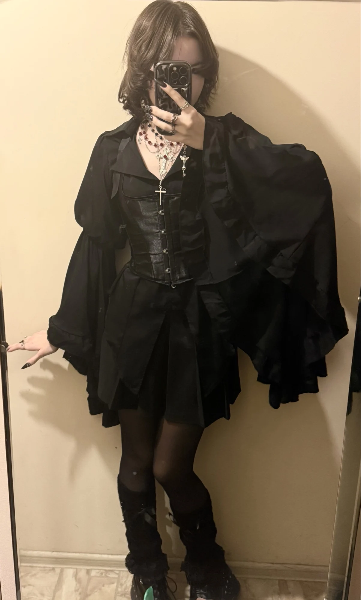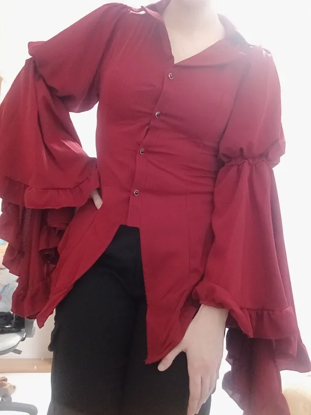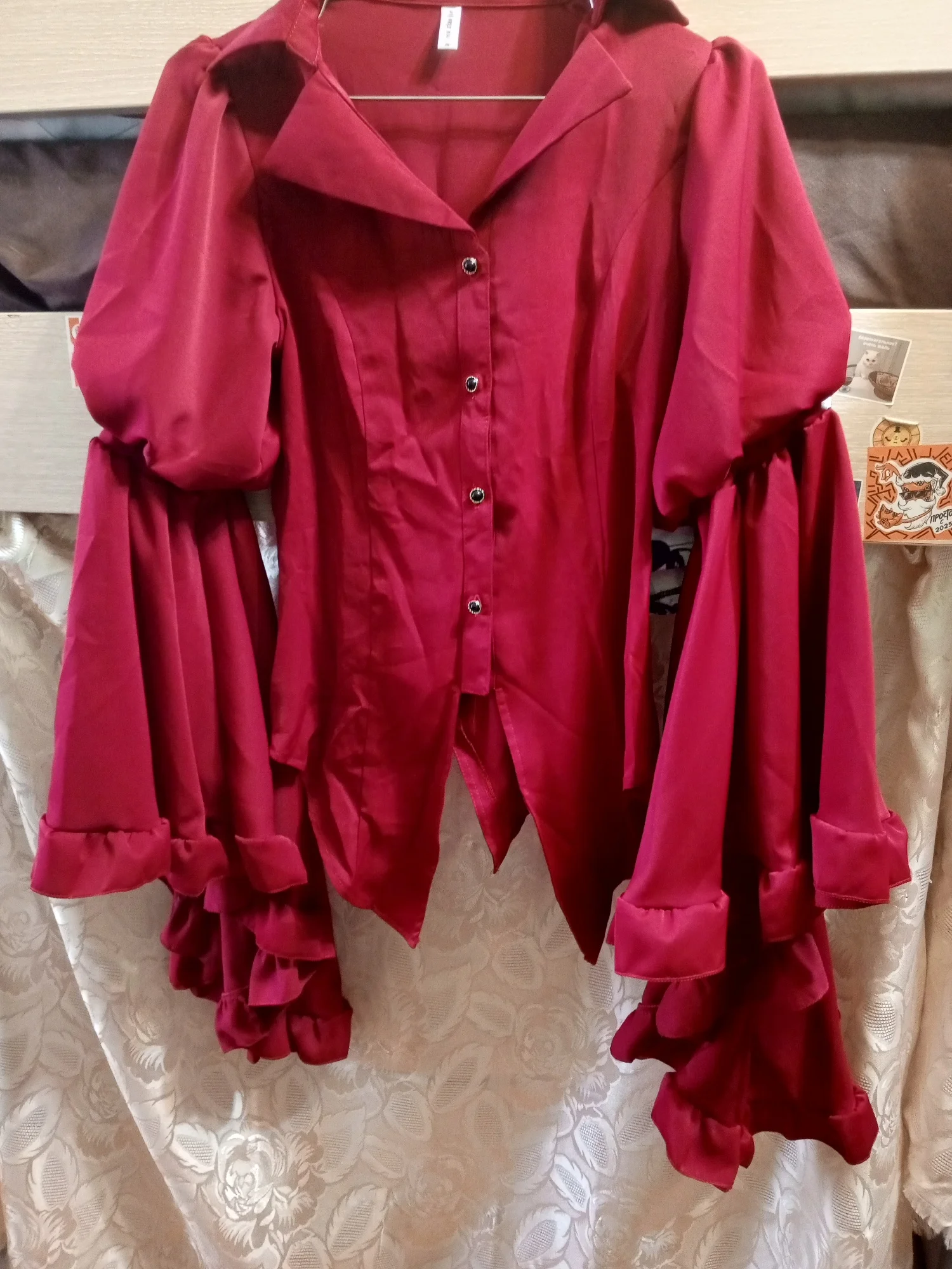 Definitely my favorite among my many shirts. The material is pleasant, but be prepared to carefully steam the entire surface every time, especially the sleeves. It turned out to be too big for my S size (waist 62cm, chest about 86cm), so I only wear it with corsets. Looks very luxurious, I don't regret a single penny spent. But keep in mind the issue with the size; if you want it to fit more snugly, I would take a size smaller than mine. But, alas, there is no XS, so I make do with stylization.