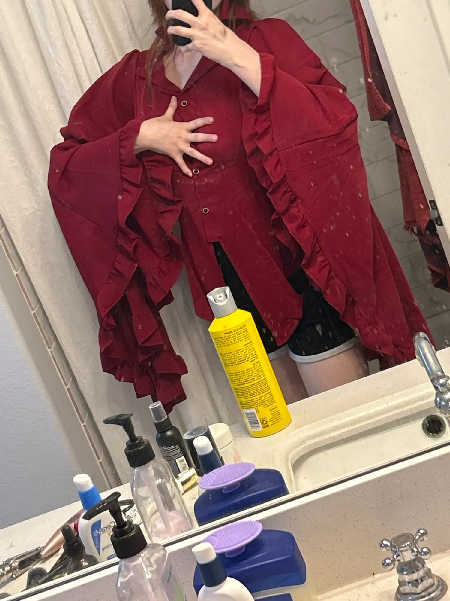 This shirt is suuuuppperrrr cute! The quality is nice! It’s a pretty strong material while still being light and flowy! Super comfortable! The only downside is that this was defiantly made with small busts in mind, the button i’m covering is about to fling off i fear. Overall very good! !