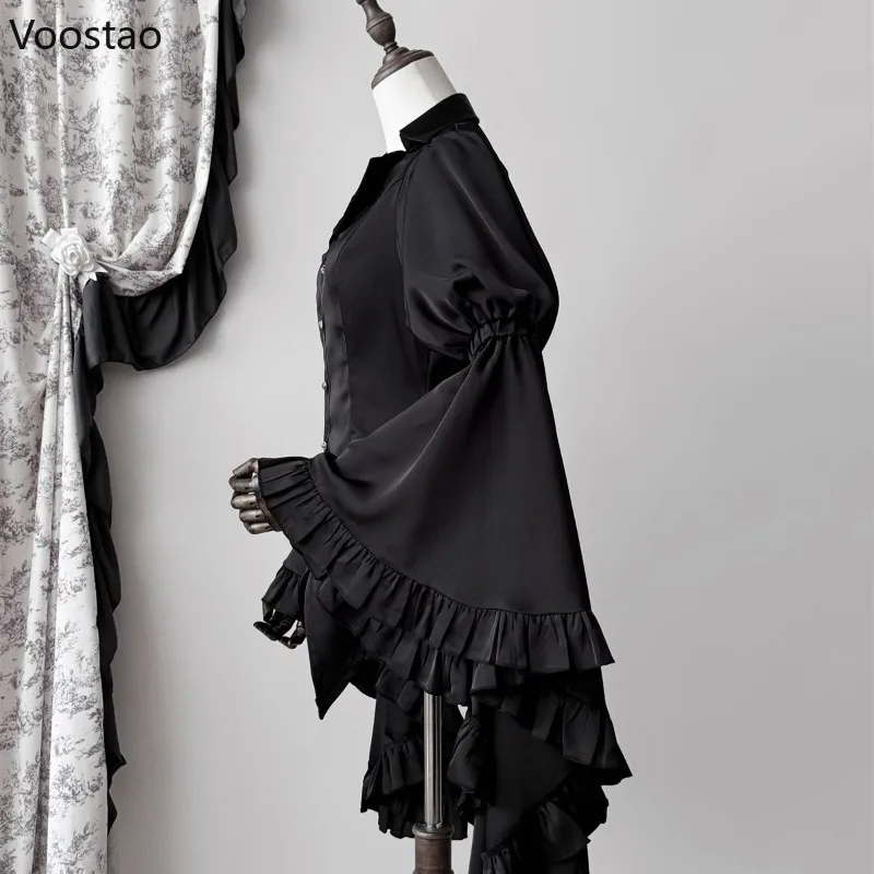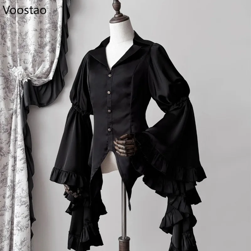 Japanese Vintage Elegant Lolita Shirt Women Victorian Gothic Flare Sleeve Blouses Female Y2k Aesthetic Casual Retro Tops Blusas