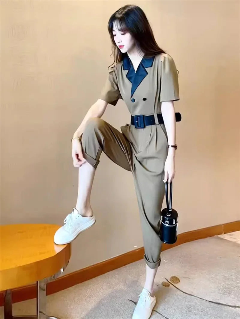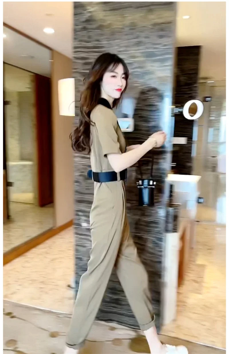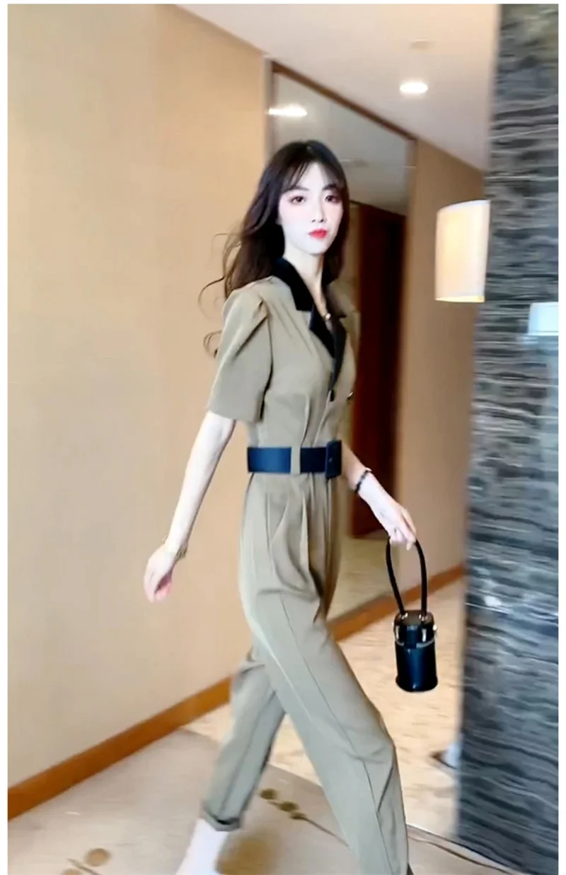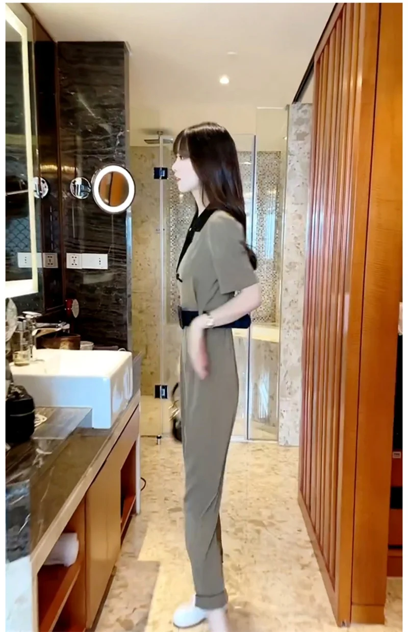 Korean Version of Trendy and Stylish Slim Fitting Waist With Contrasting Color High-end Jumpsuit for Women in the Summer of 2024