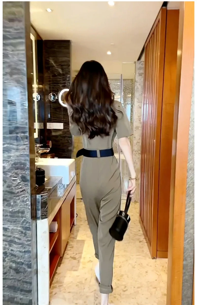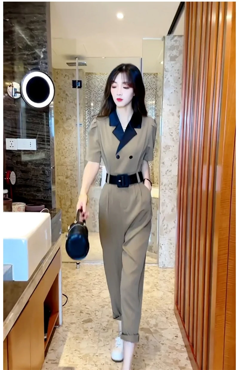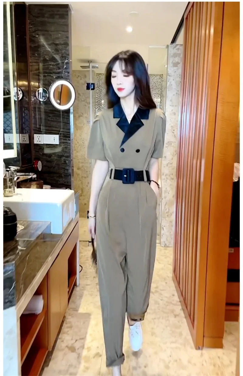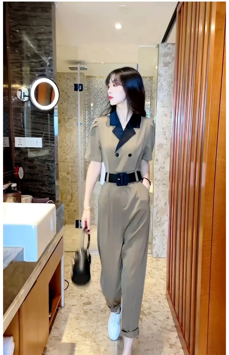 Korean Version of Trendy and Stylish Slim Fitting Waist With Contrasting Color High-end Jumpsuit for Women in the Summer of 2024