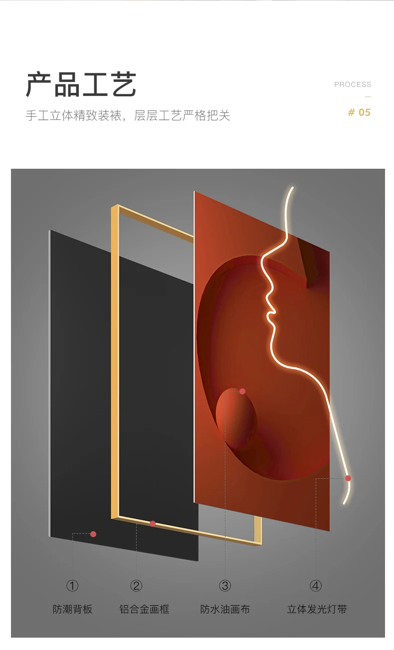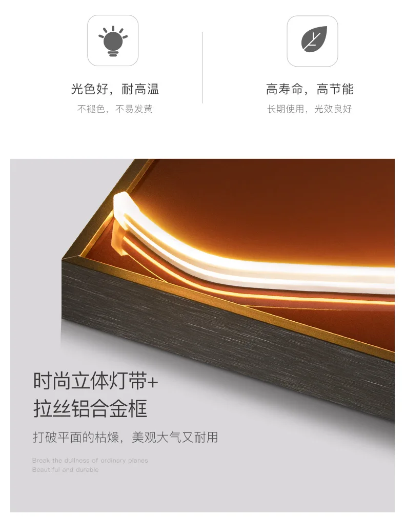 • Material: LED light strip, waterproof bright oil canvas, aluminum alloy brushed frame