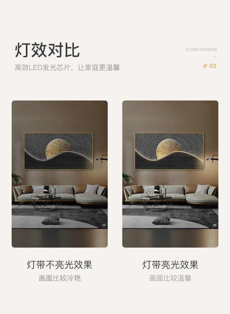 • Functional and Beautiful: Equipped with LED light strips, this piece doubles as both artwork and a functional light source, creating a warm and inviting atmosphere.