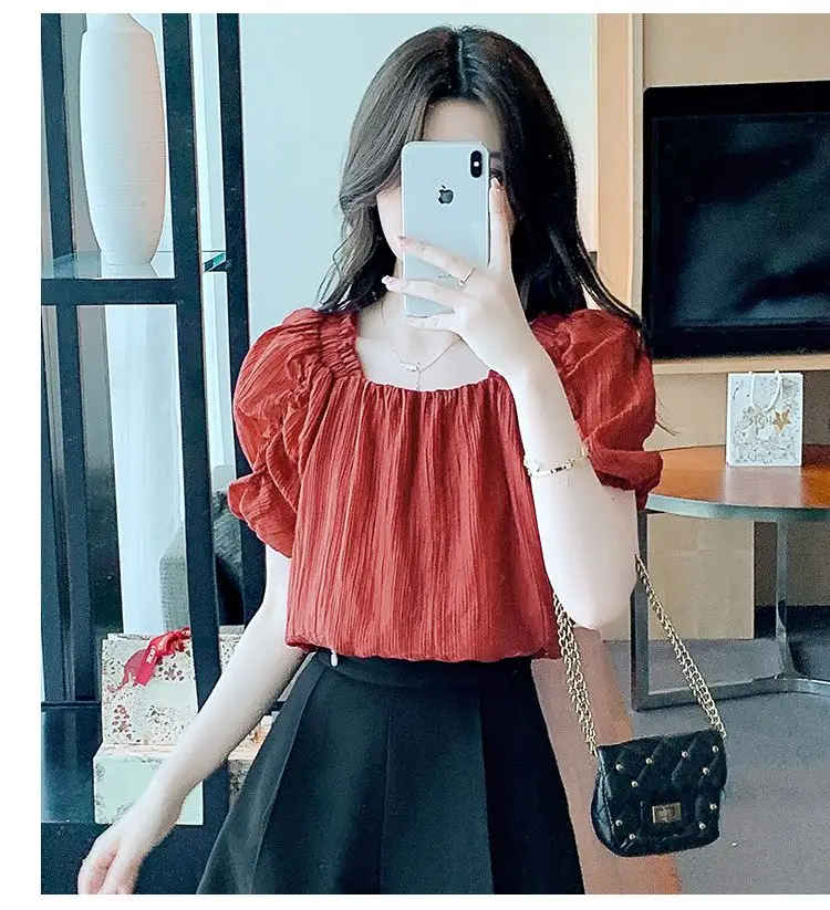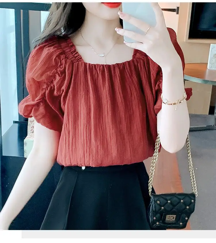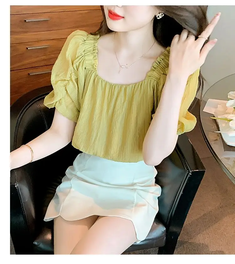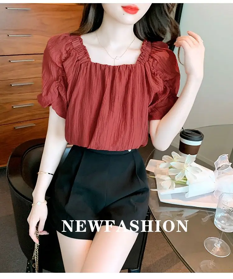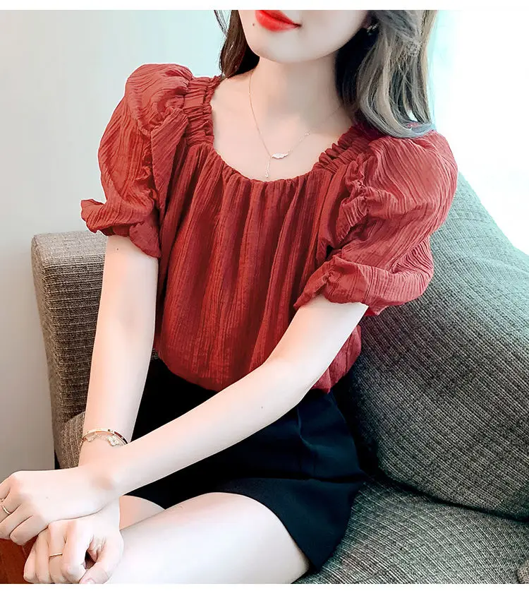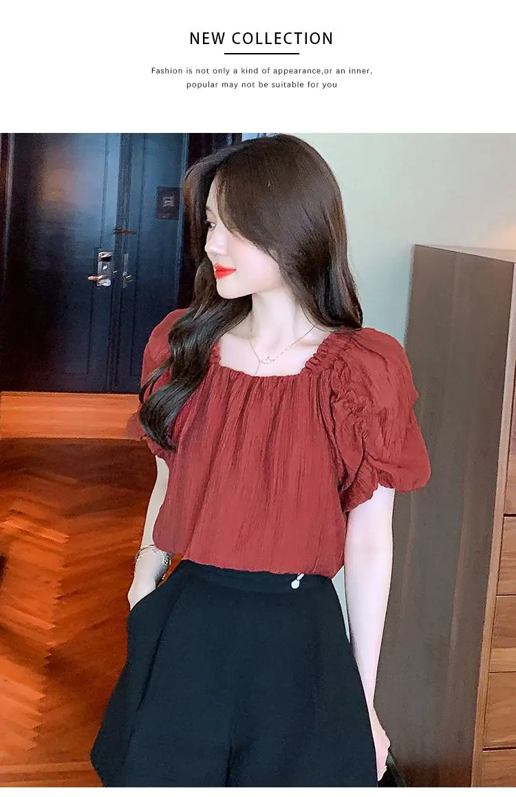 Retro Ruffle French Bubble Sleeve Chiffon Blouse Women Off-Shoulder Sweet Fresh Shirt