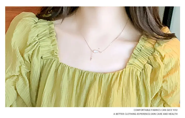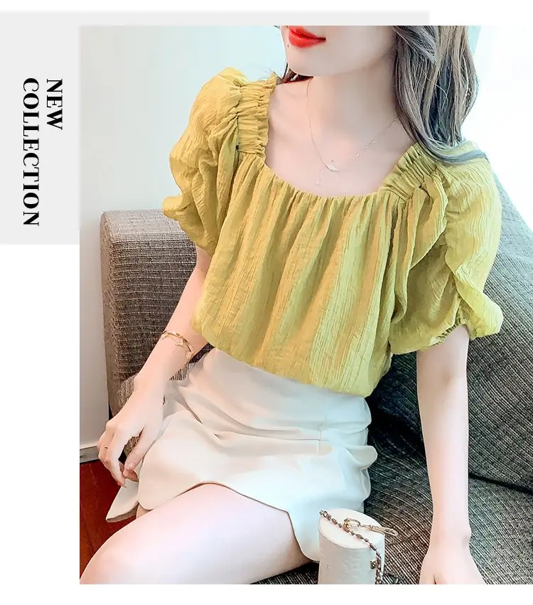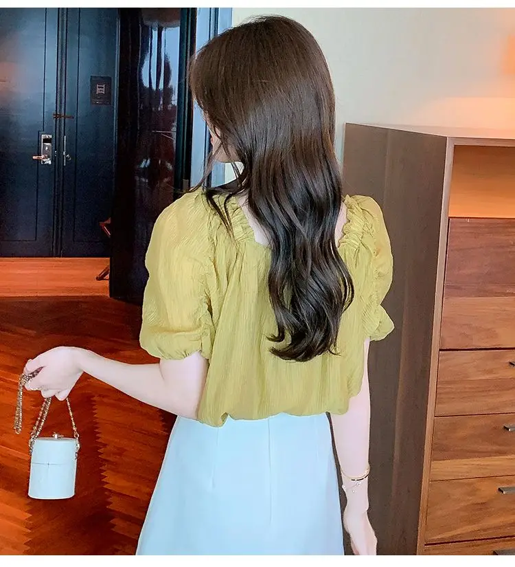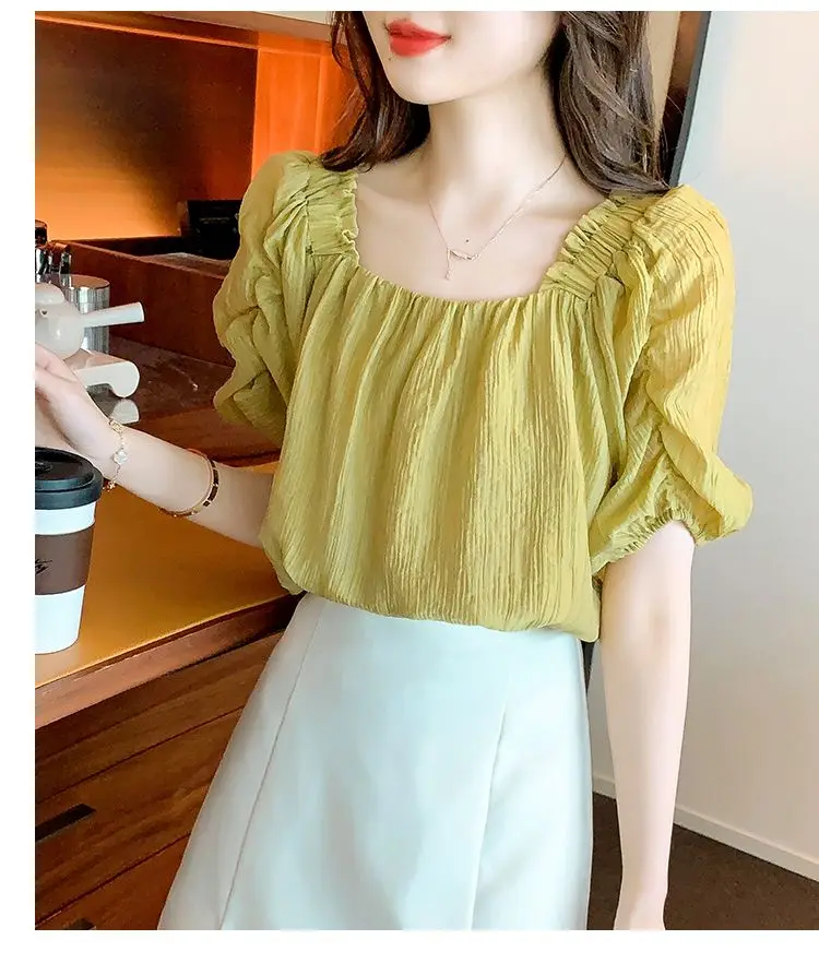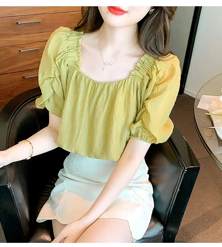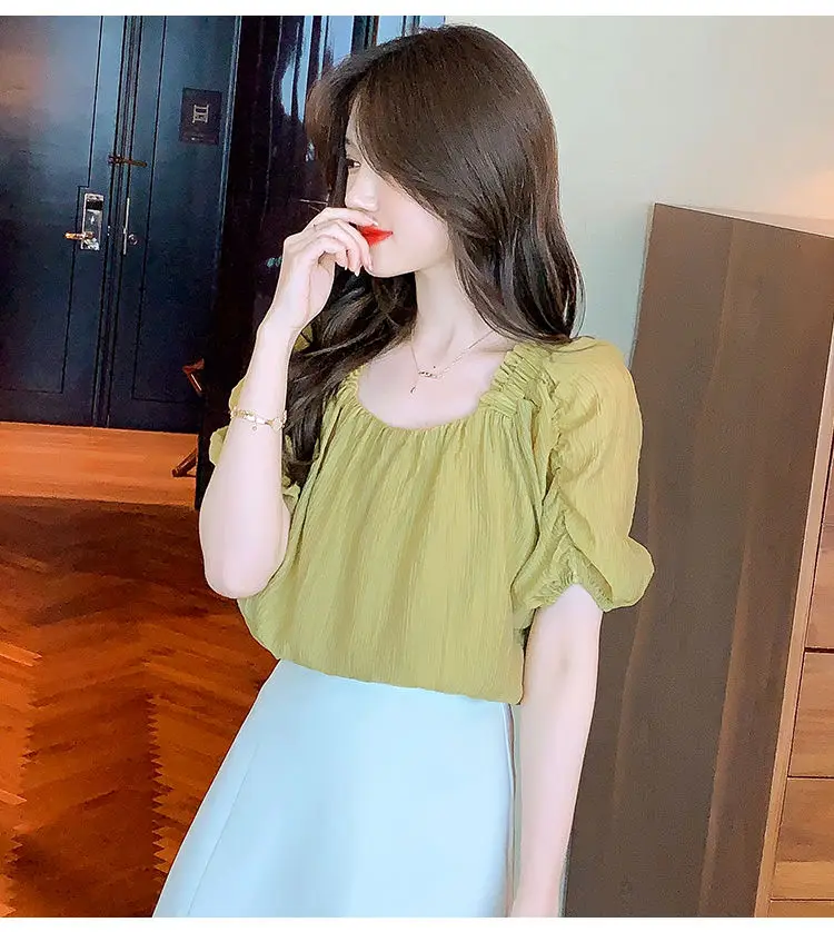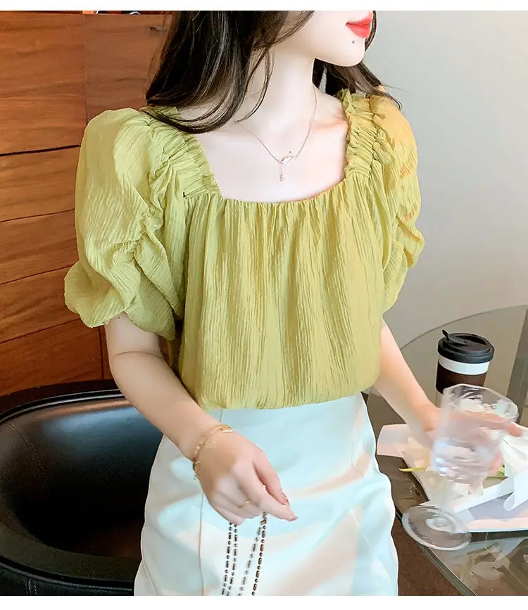 Retro Ruffle French Bubble Sleeve Chiffon Blouse Women Off-Shoulder Sweet Fresh Shirt
