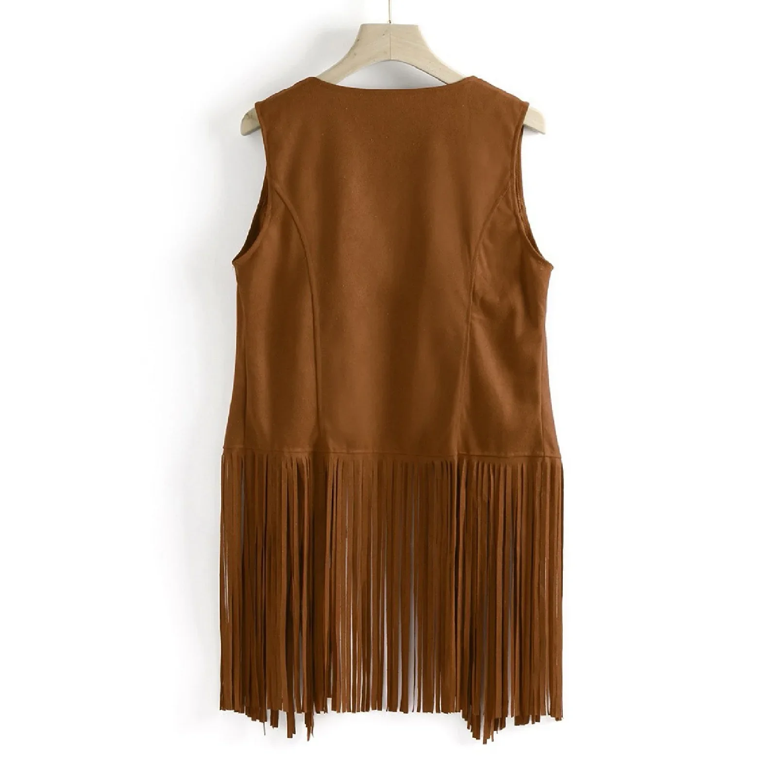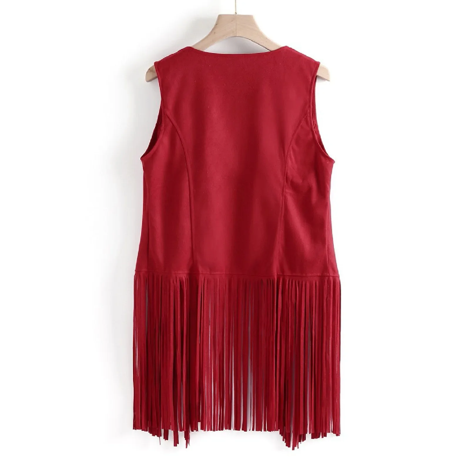 Summer New Deer Leather Vest Women's Solid Color Elegant Fringed Cardigan Sleeveless Casual Women's Style Top Amazon Best Seller